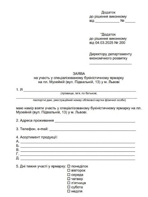 Як пояснили у міськраді, обов’язково необхідно зазначити асортимент продукції для продажу.
