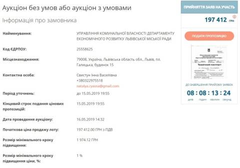 Аукціон стартує 16 травня, а початкова вартість приміщення становить 197 412 грн.