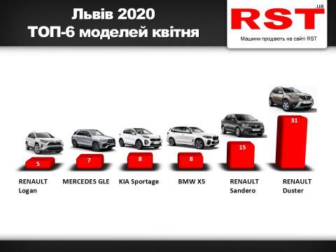 Бестселером у Львові був кросоверRenaultDuster. Крім нього були популярнимиRenaultLogan іBMWX5.