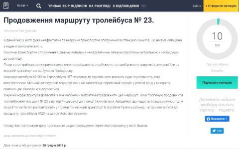 20 грудня, на порталі е-петицій Олександр Вихованець зареєструвув петицію з вимогою продовжити маршрут тролейбуса № 23.