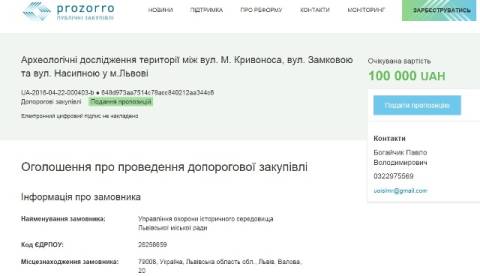 Відтак, управління охорони історичного середовища Львівської міської ради проводить закупівлю на послуги з археологічних досліджень території між вул. М. Кривоноса, вул. Замковою та вул. Насипною.