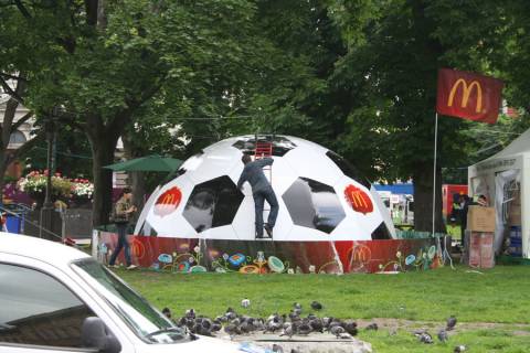 Львівська фан-зона майже готова до сьогоднішнього відкриття. Проводяться останні "косметичні" підготування.