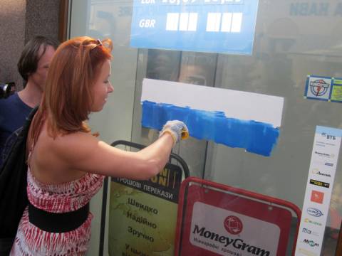 ГО "Бойкот російських товарів" розмалював фасади чотирьох російських банків у Львові.