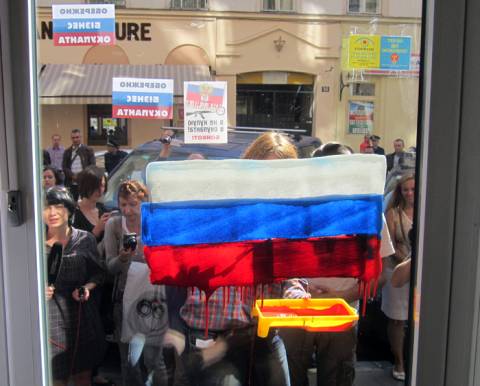 Нагадаємо, ця організація на початку серпня обвішала Сбербанк жіночою білизною, а ще раніше запустила мишей у супермаркети, де не були марковані російські товари.