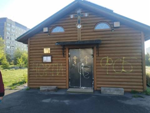 Зокрема, на стінах храму нанесли написи "Чорти ФСБ", "Дім Путіна", "Русня не люди".