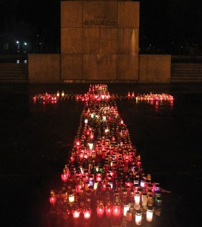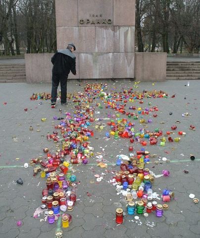 Сьогодні вночі біля пам'ятника Франку невідомі розкидали лампадки, з яких було зроблено хрест пам'яті загиблим на Майдані.
