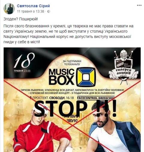 11 травня керівник штабу цивільного корпусу "Азов" Львівщини Святослав Сірий розмістив на своїй сторінці у Facebook допис про те, що він із активістами збирається блокувати цей концерт і закликав до цього громадськість.