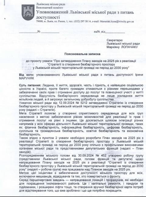 Львівська міськрада оприлюднила проєкт ухвали про затвердження Плану заходів на 2025 рік з реалізації "Стратегії із створення безбар’єрного простору у Львівській міській територіальній громаді на період до 2030 року".