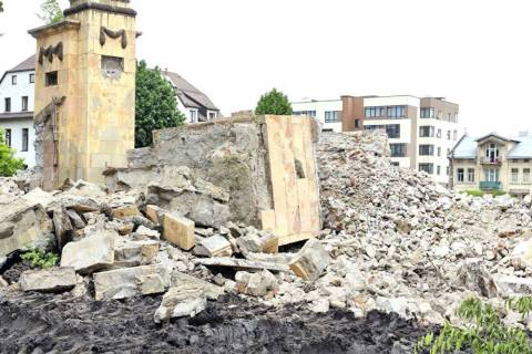 Вчора, 27 травня, на території Меморіального комплексу "Пагорб Слави", що на вул. Пасічній у Львові, розпочали демонтаж вхідних колон, деякі елементи яких перенесуть до музею "Територія терору".