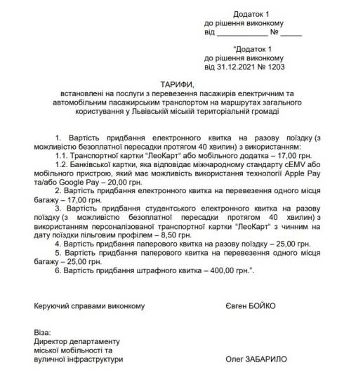 Згідно з документом, оприлюдненим на сайті Львівської міськради, мерія пропонує підвищити оплату за проїзд за допомогою банківської картки та "Леокарт", натомість готівкову оплату вирішили не змінювати.