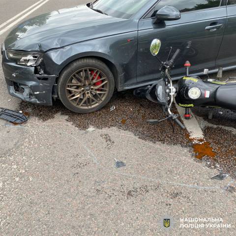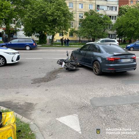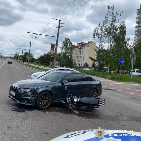 Вчора, 5 травня, близько 14.10 год на вулиці Соняшниковій у Львові зіткнулись авто Audi A4, яким керував 23-річний львів’янин, та мотоцикл Mustang MT125-8 під керуванням 34-річного мешканця Львова.