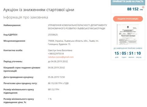 Початкова ціна приміщення, виставленого на аукціон, який мав відбутися 16 травня. становила 176 304 грн, однак тепер її зменшили до 88 152 грн. В управлінні комунальної власності пояснили, що приміщення не придбали під час першого етапу, відтак, повторний аукціон оголошується зі зниженням стартової ціни на 50%.