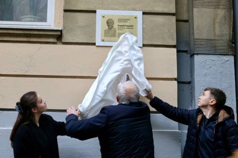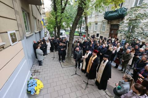 Меморіальну таблицю колишньому спікеру ВРУ Андрію Парубію облаштували на фасаді будинку № 48 на вул. Єфремова.