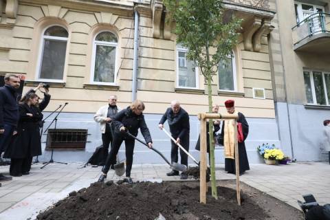 Наприкінці заходу в пам’ять про Андрія Парубія його рідні висадили ясен та разом з присутніми запалили свічки до меморіальної таблиці.