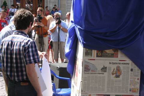 "Це добра ідея відновлення Стовпа ганьби у Львові. Це постійне нагадування владі: чиновники змінюються – громада залишається", - сказав один із учасників акції, журналіст Ігор Лильо.