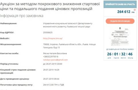 Повторний аукціон стартував 27 червня, проте приміщення знову не продали. Саме тому управління комунальної власності міськради оголосило, що 29 липня відбудеться аукціон за методом покрокового зниження стартової ціни.