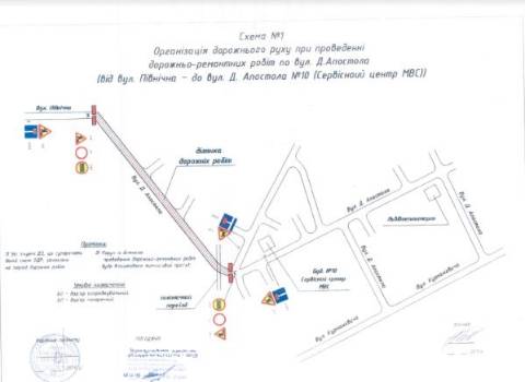 У зв’язку з проведенням дорожньо-ремонтних робіт на вул. Д Апостола, до 20:00 год 26 травня 2020 р продовжено перекриття руху транспорту на вул. Д. Апостола, на ділянці від вул. Північна, до вул. Д. Апостола, 8.