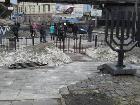 У п'ятницю, 5 квітня, невідомі спиляли і викрали залізний паркан поблизу пам'ятника жертвам Гетто.