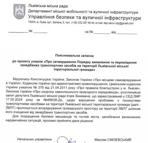 "З метою врегулювання ситуації із занедбаними та безхазяйними транспортними засобами на території Львівської МТГ затвердити Порядок виявлення та переміщення занедбаних транспортних засобів на території Львівської міської територіальної громади" – йдеться у тексті ухвали.