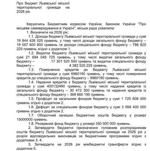 На сайті Львівської міськради оприлюднили проєкт ухвали про бюджет Львівської міської територіальної громади на 2026 рік.