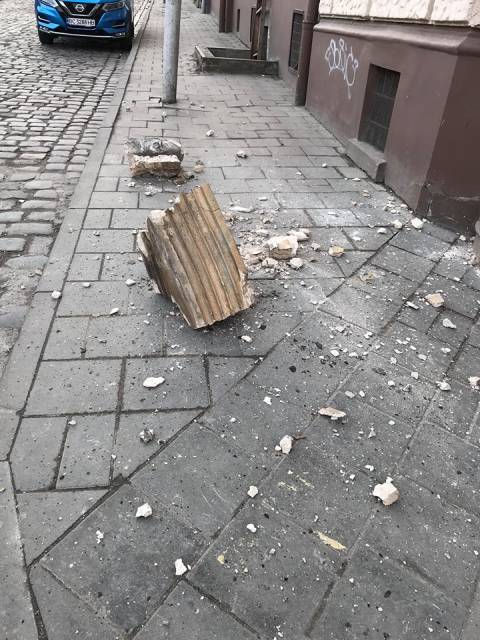 Нагадаємо, 1 лютого з фасаду будинку на вул. Дорошенка штукатурка впалана перехожого, якого внаслідок цього доставили до лікарні. А 26 лютого у Львові штукатурка з аварійного будинку травмувала пішохода.