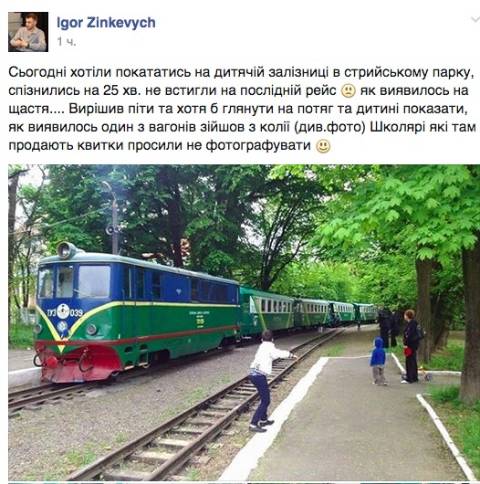 Подія сталась близько 17.00. Це був останній рейс дитячого потягу. Постраждалих нема, хоча вагони булі всі заповнені, розповідають у соціальних мережах учасники події.