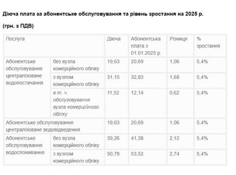 З 1 січня 2025 року зросте розмір плати за абонентське обслуговування з централізованого водопостачання та централізованого водовідведення, які надаються споживачам за індивідуальними договорами.