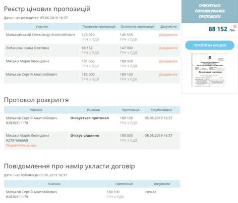 Повторний аукціон стартував 5 червня, на нього подалися 4 учасників, однак переможцем обрали Сергія Малькова зі Львова, який запропонував за приміщення 180 100 грн.