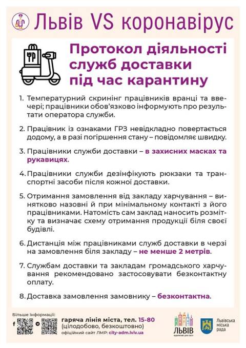 Львівська міськрада розробила правила роботи служб доставки на час карантину.