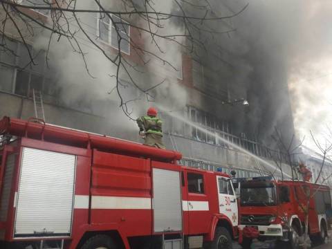 Рятувальники, які прибули на місце пожежі, виявили загорання на 2-му поверсі будівлі у виробничому приміщенні заводу "Електрон".