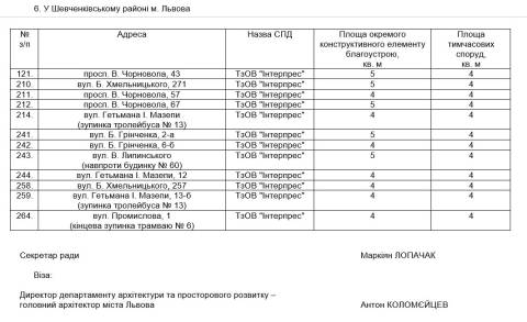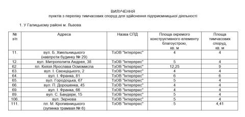 Згідно з документом, депутати вилучили з Комплексної схеми розміщення тимчасових споруд 70 МАФів, що належали мережі "Інтерпрес".