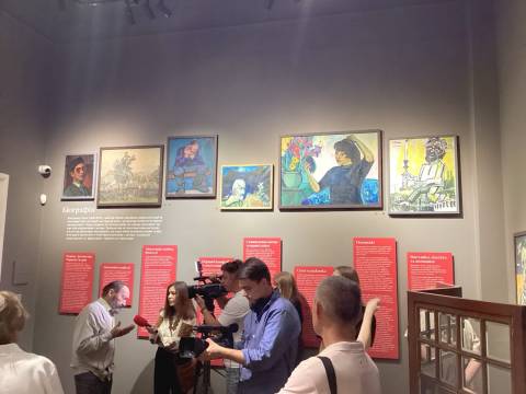 Під час відкриття гостям презентували інтерактивний фільм, який розповів про біографію художника, каральні заходи радянської влади, його творчий шлях та особливості створення найвідоміших картин.