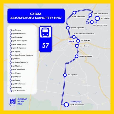 Як заявили в управлінні транспорту Львівської міськради, маршрут №57 передбачений в міській автобусній мережі, але не працював тривалий час. А тепер місту вдалося залучити нового перевізника та відновити цей маршрут. Згідно з результатами конкурсу, обслуговуватиме його новий для Львова перевізник – ТОВ "Транс-Сіті".