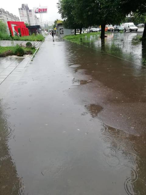 Через рясні опади затопило пішохідні доріжки на частині вулиці Чорновола.