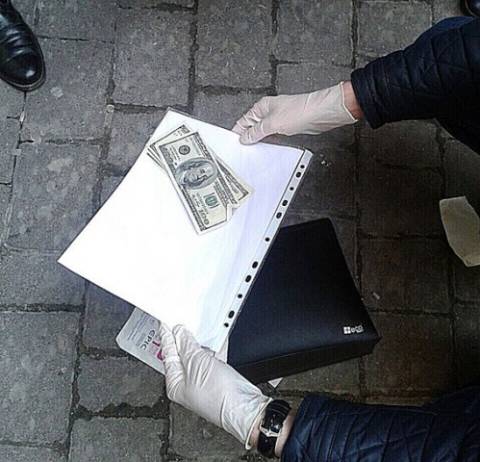 Під час отримання хабара біля Оперного театру юриста спіймали працівники поліції та вилучили в нього 1000 доларів, які він отримав від львів’янки.