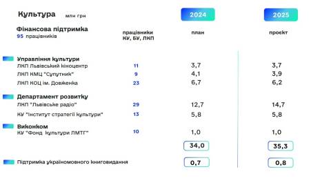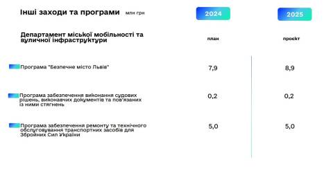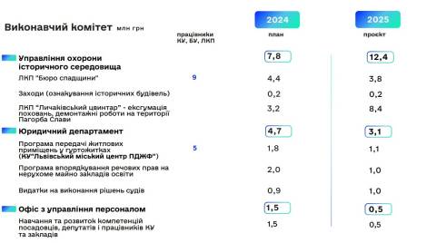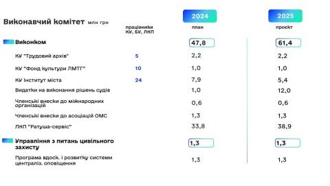 Натомість на дільність виконавчого комітету Львівської міськради у 2025 році депутати передбачили 61,4 млн грн.
