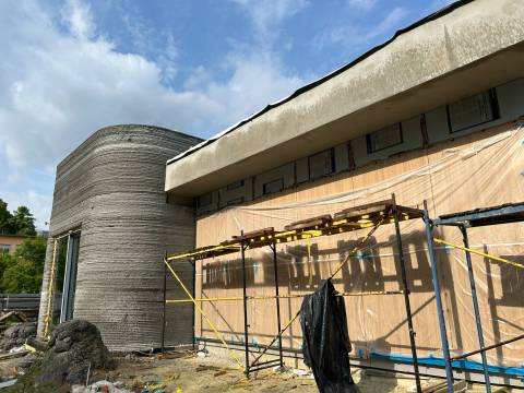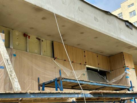 Станом на сьогодні у місті підрядники завершують фасадні роботи з будівництва багатофункціонального навчального комплексу на вул. Варшавській, 126 за допомогою 3D-принтера.