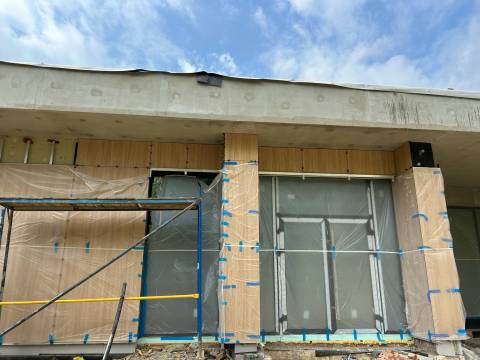Наразі у будівлі вже встановили усі вікна й паралельно завершується проєктування благоустрою території довкола школи.