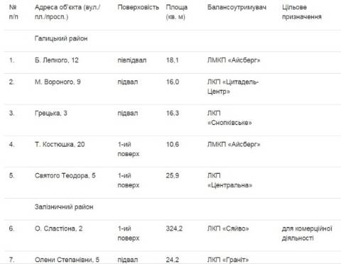 Зокрема, планують передати в оренду такі об’єкти нерухомого майна: