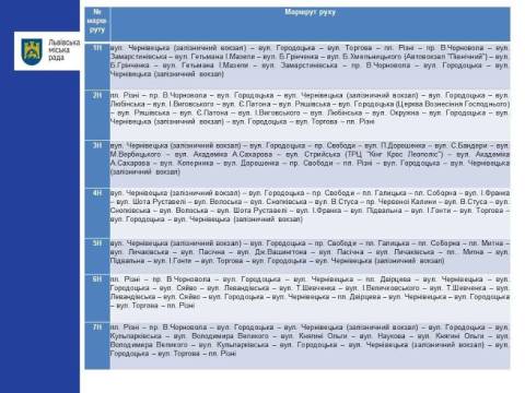 Тимчасова мережа нічних маршруток працюватиме з 19 липня до 30 вересня цього року у складі 7 маршрутів з 23.00 до 6.00 год. Перевезення здійснюватимуться 1 автобусом на кожному з маршрутів, що забезпечить інтервал руху – 1 год.