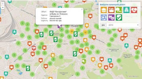 Відтепер у рамках проекту «Open Budget» можна відслідковувати, що саме цьогоріч ремонтуватимуть чи модернізуватимуть на вулиці або у мікрорайоні Львова за бюджетні кошти на картах.