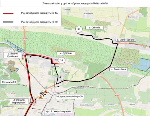 На час ремонтних робіт міські автобуси №1А та №60 курсуватимуть через село Великі Грибовичі.