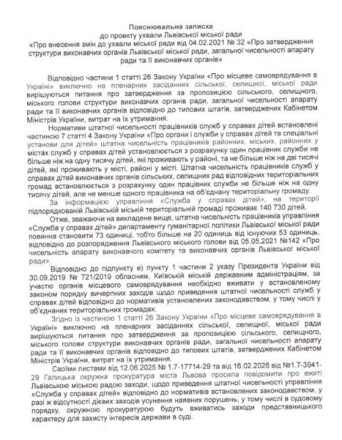 Згідно з документом, йдеться про збільшення чисельності міського управління "Служба у справах дітей". Зокрема, тут планують 20 створити нових посад.