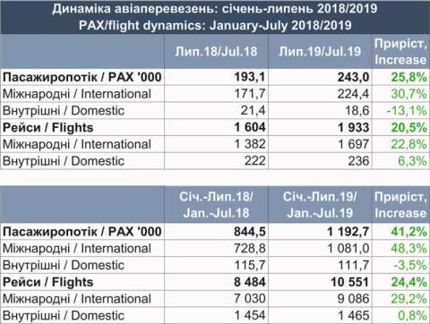Загалом, за січень-липень пасажиропотік зріс на 41,2%, в порівнянні з цими місяцями минулого року (844,5 тисяч пасажирів), і досяг позначки в 1 192,7 тисяч пасажирів.