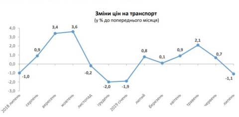 У сфері транспорту у липні 2019 року, порівняно з попереднім місяцем, ціни