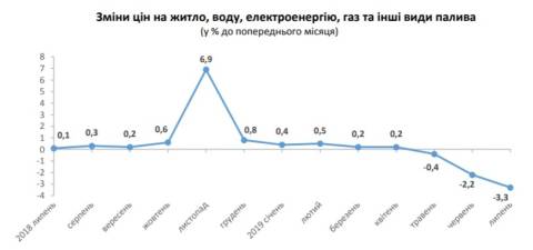 Зниження цін у житлово-комунальній сфері на 3,3% відбулося, головним чином, за рахунок зниження тарифів на газ природний (на 10,1%). Вартість інших комунальних послуг не змінилася.