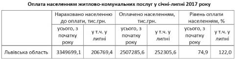 У січні-липні 2017 року за електроенергію населенням Львівщини було сплачено 684,8 млн.грн, заборгованість на кінець липня 2017 року становила 48,7 млн.грн.