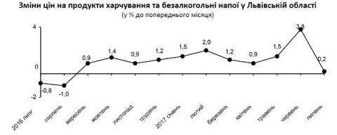 Улипні, порівняно з червнем, ціни на продукти харчування та безалкогольні напої зросли на 0,2%.