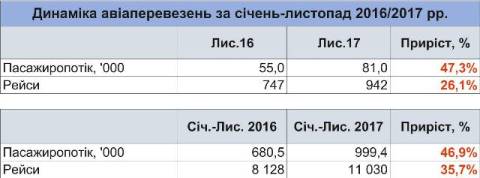 Кількість здійснених рейсів у листопаді стновила 940, що на 25,8% більше, ніж минулого року – 747.