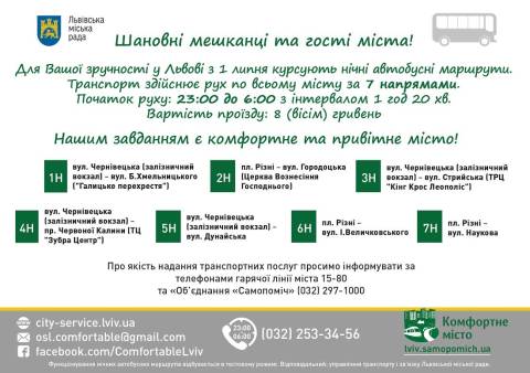Термін обстеження – з 1 липня по 1 листопада. Вартість проїзду складатиме 8 грн на одну поїздку, а посвідчення на безоплатний проїзд пільговим категорія пасажирів у нічному транспорті не діютимуть.